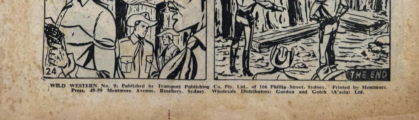 Wild Western No. 9: Published by Transport Publishing Co. Pty. Ltd., of 166 Phillip Street, Sydney. Printed by Mentmore Press, 49-59 Mentmore Avenue, Rosebery, Sydney. Wholesale Distributors: Gordon and Gotch (A'asia) Ltd.