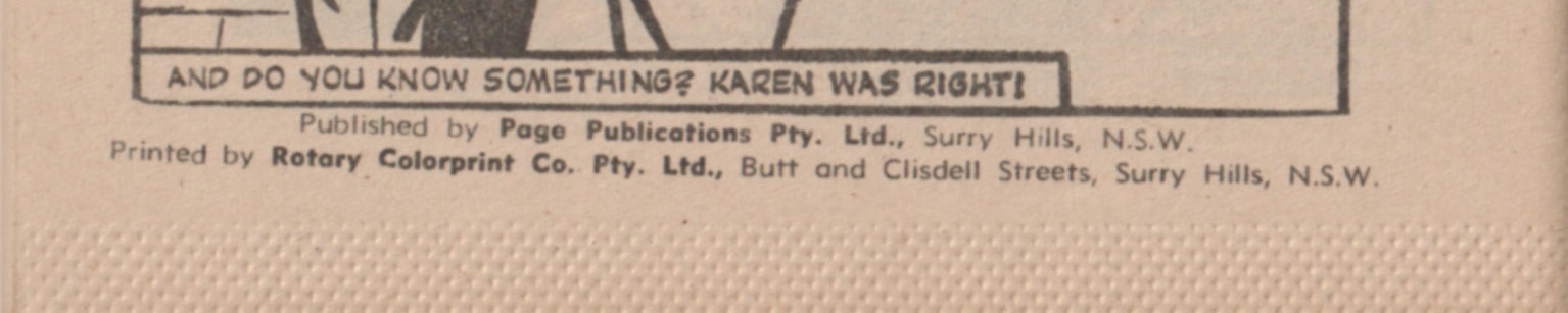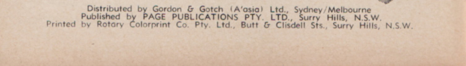 Distributed by Gordon & Gotch (A'asia) Ltd., Sydney/Melbourne. Published by Page Publications Pty. Ltd., Surry Hills, N.S.W. Printed by Rotary Colorprint Co. Pty. Ltd., Butt & Clisdell Sts., Surry Hills, N.S.W.