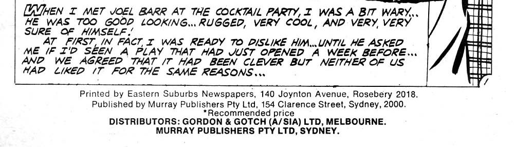 Printed by Eastern Suburbs Newspapers, 140 Joynton Avenue, Rosebery 2018. Published by Murray Publishers Pty Ltd, 154 Clarence Street, Sydney, 2000. Distributors: Gordon & Gotch (A/sia) Ltd, Melbourne. Murray Publishers Pty Ltd, Sydney.