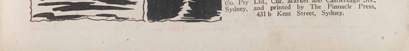 Published by The New South Wales Bookstall Co. Pty Ltd., Cr. Market and Castlereagh Sts., Sydney, and printed Pinnacle Press, 431 b Kent Street, Sydney.