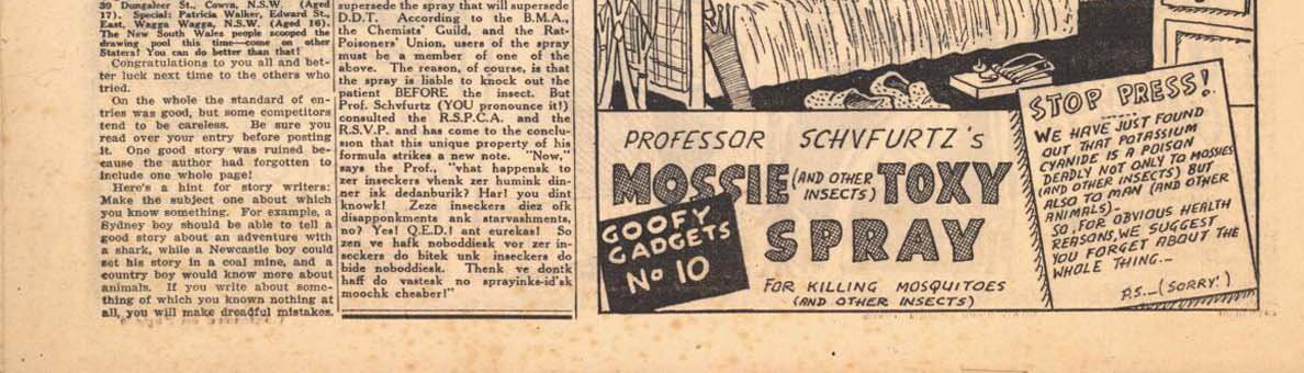 Wholly set up and printed for Syd. Miller Publications by The Land Newspaper, 59 Regent St., Sydney. Please address all communications Monster Comic, Box 3996, G.P.O., Sydney.