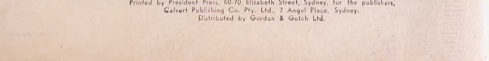 Printed by President Press, 60-70 Elizabeth Street, Sydney, for the publishers, Calvert Publishing Co. Pty. Ltd., 7 Angel Place, Sydney. Distributed by Gordon & Gotch Ltd.