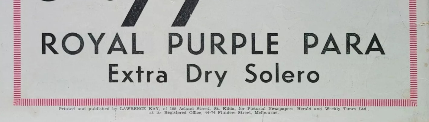 Printed and published by Lawrence Kay of 106 Acland Street, St. Kilda, for Pictorial Newspapers, Herald and Weekly Times Ltd. At the Registered Office, 44-74 Flinders Street, Melbourne.