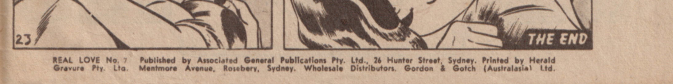 Real Love No. 7. Published by Associated General Publications Pty. Ltd., 26 Hunter Street, Sydney. Printed by Heral Gravure Pty. Ltd., Mentmore Avenue, Rosebery, Sydney. Wholesale Distributors, Gordon & Gotch (Australasia) Ltd.