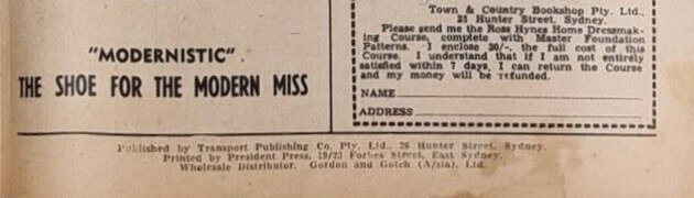 Published by Transport Publishing Co. Pty. Ltd., 26 Hunter Street, Sydney. Printed by President Press, 19/23 Forbes Street, East Sydney. Wholesale Distributor. Gordon and Gotch (A/sia), Ltd.