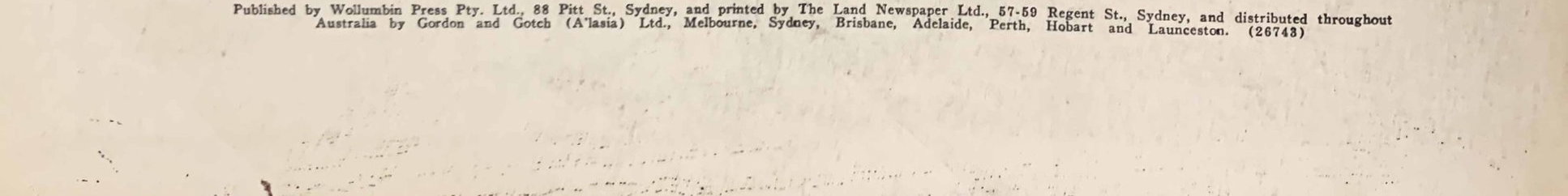 Published by Wollumbin Press Pty. Ltd., 88 Pitt St., Sydney, and printed by The Land Newspaper Ltd., 57-59 Regent St., Sydney, and distributed throughout Australia by Gordon and Gotch (A'lasia) Ltd., Melbourne, Sydney, Brisbane, Adelaide, Perth, Hobart and Launceston. (26743)