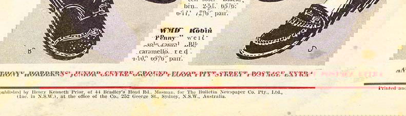 Printed and published by Henry Kenneth Prior, of 44 Bradley's Head Rd., Mosman, for The Bulletin Newspaper Co. Pty. Ltd., (Inc. in N.S.W.), at the office of the Co., 252 George St., Sydney, N.S.W., Australia.
