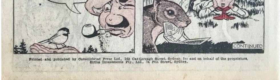 Printed and publihsed by Consolidated Press Ltd., 163 Castlereagh Street, Sydney, for an on behalf of the proprietors, Sirius Investments Pty., Ltd., 74 Pitt Street, Sydney.