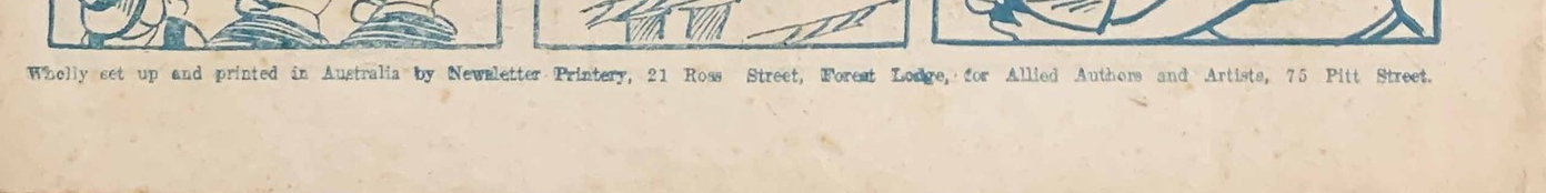 Wholly set up and printed in Australia by Newsletter Printery, 21 Ross Street, Forest Lodge, for Allied Authors and Artists, 75 Pitt Street.