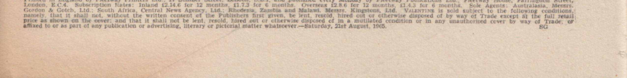 Valentine, 21 August 1965