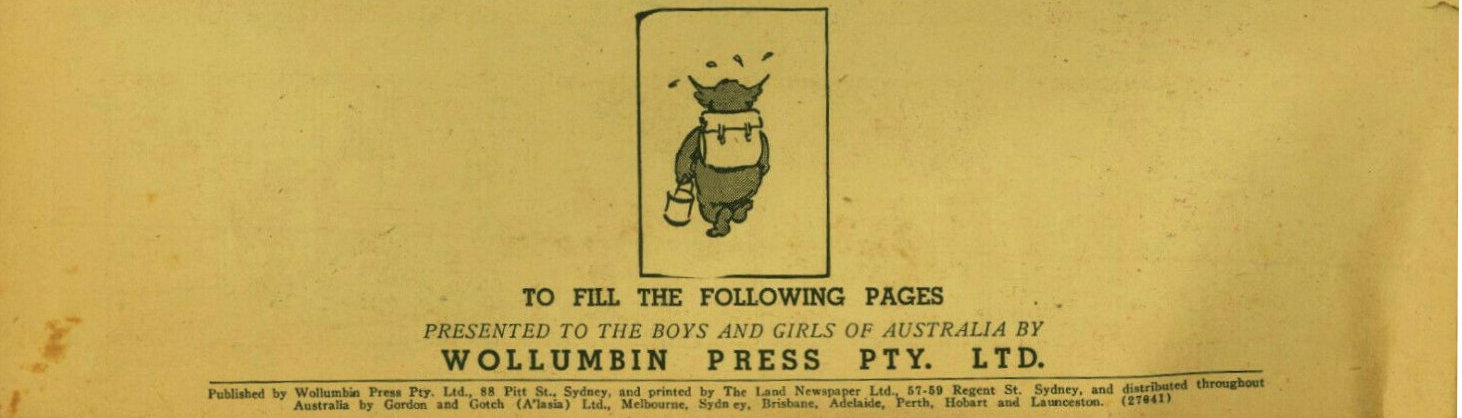 Published by Wollumbin Press Pty. Ltd., 88 Pitt St., Sydney, and printed by The Land Newspaper Ltd., 57-59 Regent St. Sydney, and distributed throughout Australia by Gordon and Gotch (A'lasia) Ltd., Melbourne, Sydney, Brisbane, Adelaide, Perth, Hobart and Launceston. (27041)