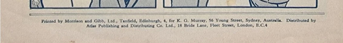 Printed by Morrison and Gibb, Ltd., Tanfield, Edinburgh, 4, for K. G. Murray, 56 Young Street, Sydney, Australia. Distributed by Atlas Publishing and Distributing Co. Ltd., 18 Bride Lane, Fleet Street, London, E.C.4