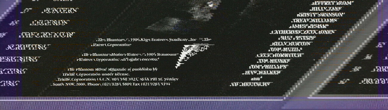 This magazine is (mostly) a reprint of the US Phantom Official Movie Magazine published by Starlog. It has been reported as created from a scan of the US printed magazine, including blemishes from staples.