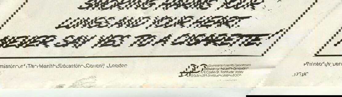 This publication is a reprint of the 1980 UK anti-smoking campaign, paid for by the Health Education Council (HEC) and designed by the advertising agency Saatchi and Saatchi. For further information see www.nature.com/articles/s41599-019-0326-6.