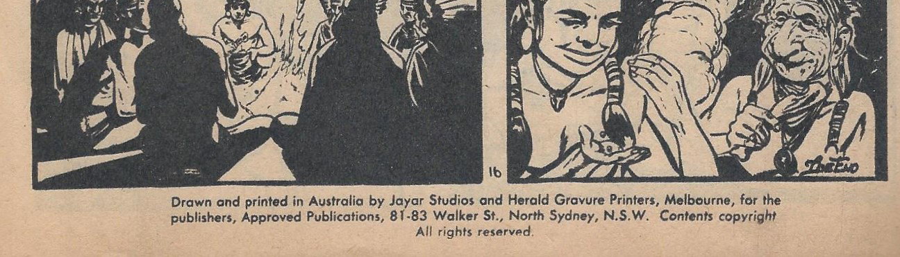 Drawn and printed in Australia by Jayar Studios and Herald Gravure Printers, Melbourne, for the publishers, Approved Publications, 81-83 Walker St., North Sydney, N.S.W. Contents Copyright. All rights reserved. Distributed throughout Australia by Gordon & Gotch (A/sia) Ltd. All names used throughout are fictitious and do not refer to any living person.