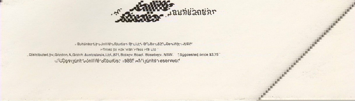 A Jolliffe Studios Publication. Published by Jolliffe Studios Pty Ltd, PO Box 520, Dee Why, NSW. Printed by …