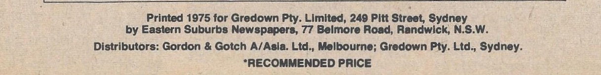 Printed 1975 for Gredown Pty. Limited, 249 Pitt Street, Sydney by Eastern Suburbs Newspapers, 77 Belmore Road, Randwick, N.S.W. Distributors: Gordon & Gotch A/Asia. Ltd., Melbourne; Gredown Pty. Ltd., Sydney.