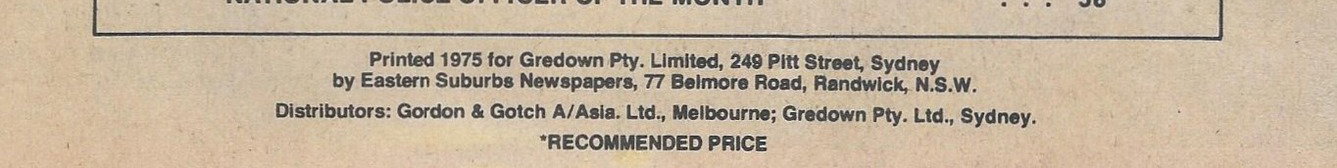 Printed 1975 for Gredown Pty. Limited, 249 Pitt Street, Sydney by Eastern Suburbs Newspapers, 77 Belmore Road, Randwick, N.S.W. Distributors: Gordon & Gotch A/Asia, Ltd., Melbourne; Gredown Pty. Ltd., Sydney.