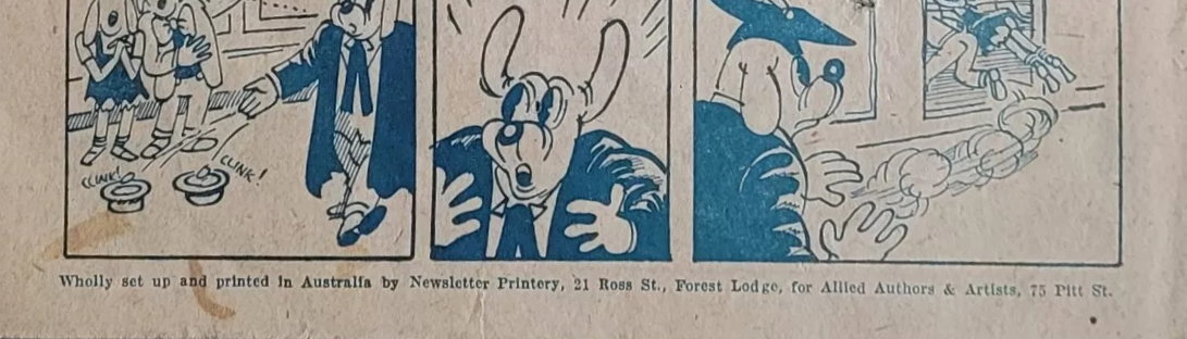 Wholly set up and printed in Australia by Newsletter Printery, 21 Rose St., Forest Lodge, for Allied Authors & Artists, 75 Pitt St.